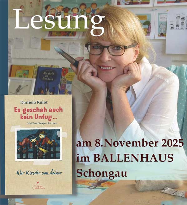 Die in Schongau geborene und in Altenstadt aufgewachsene Autorin und Illustratorin Daniela Kulot liest bei dieser Veranstaltung aus ihrem Buch „Es geschah auch kein Unfug…“, welches von ihrer Kindheit in Altenstadt erzählt.